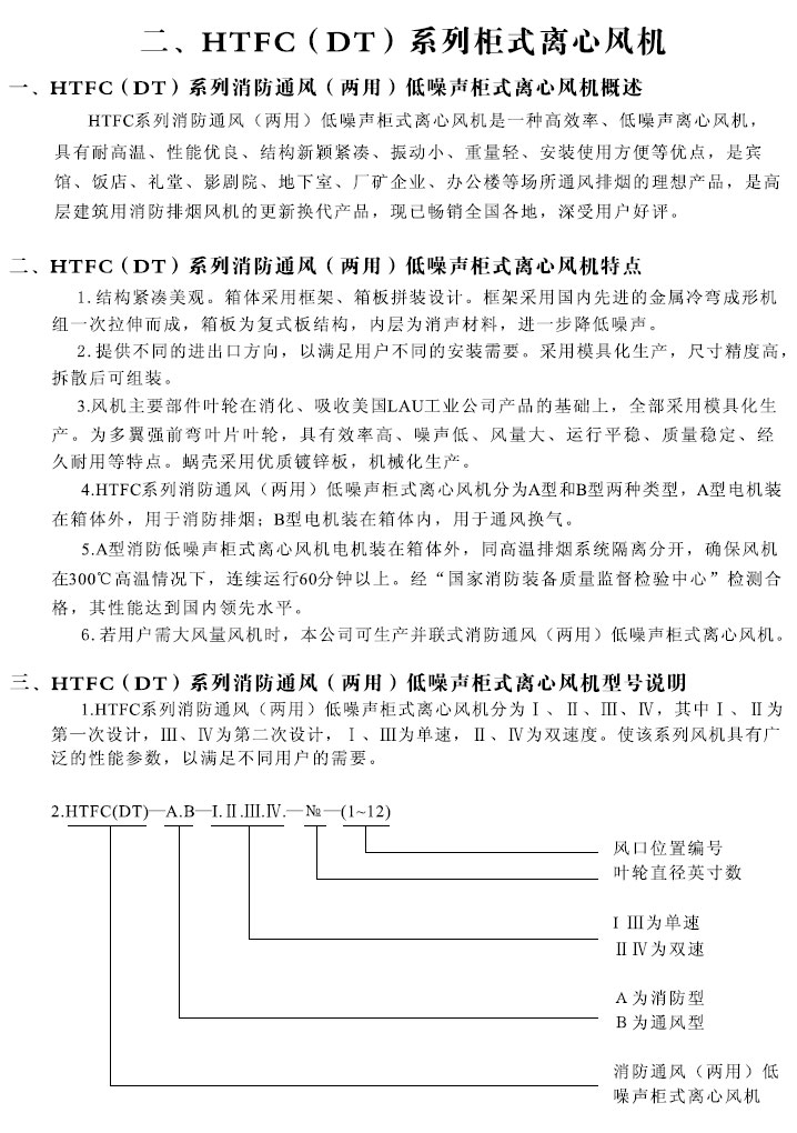 HTFC(DT)-I、II、III、IV系列消防通風(兩用)柜式離心風機